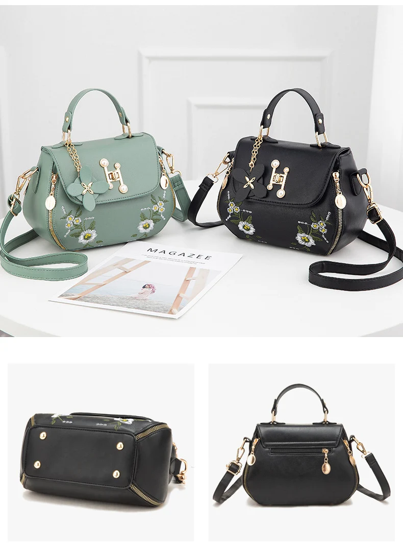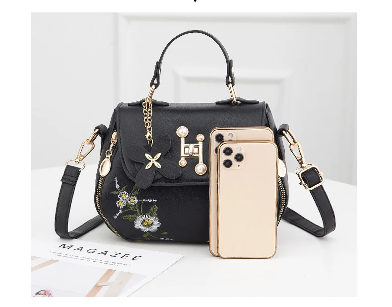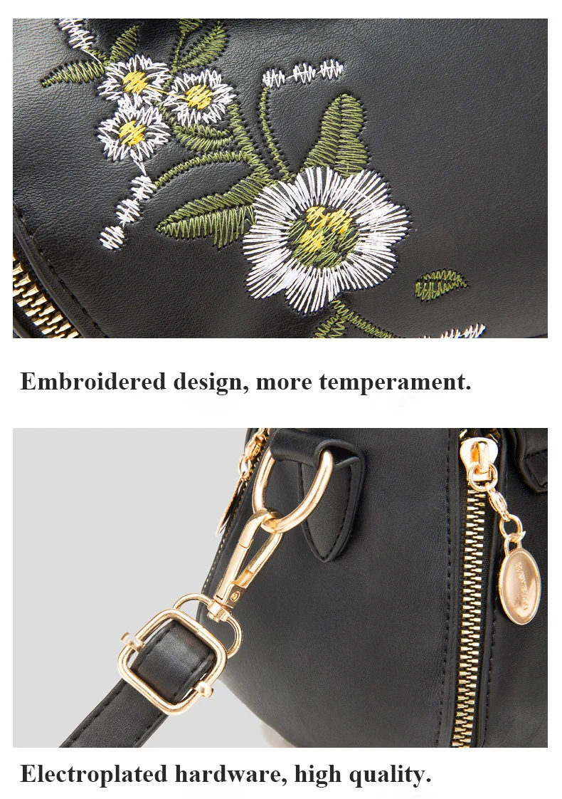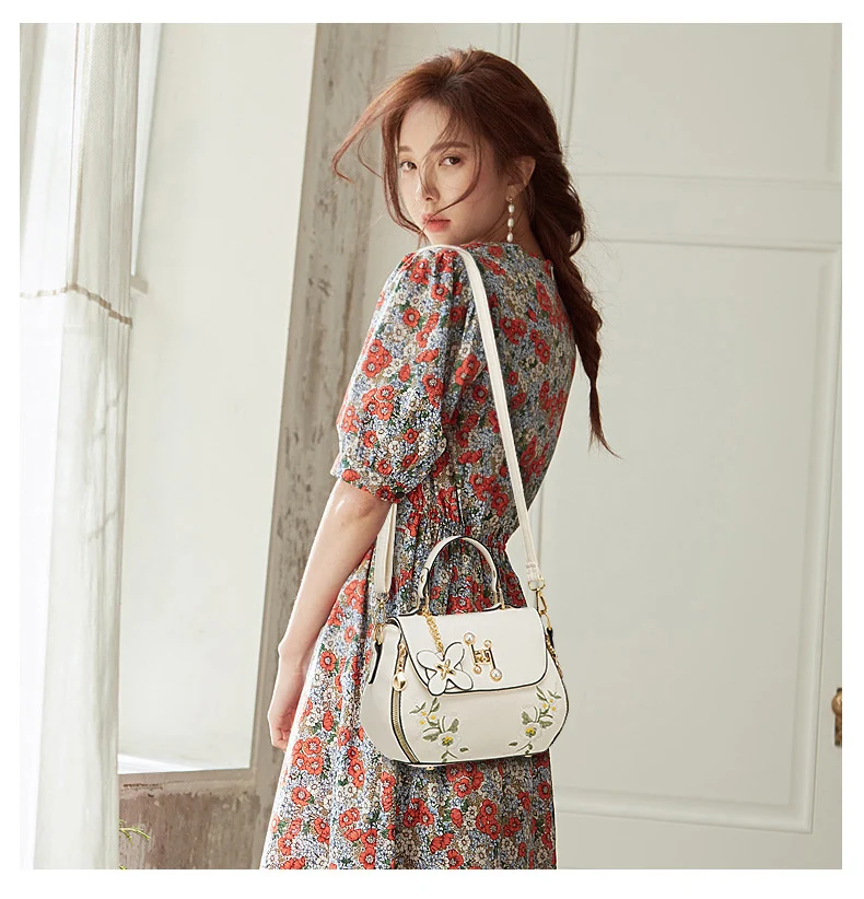 This handbag features a stylish design perfect for autumn, with intricate embroidery that adds a unique touch. The single shoulder strap offers versatile crossbody wear, combining fashion and comfort effortlessly for your daily activities.
