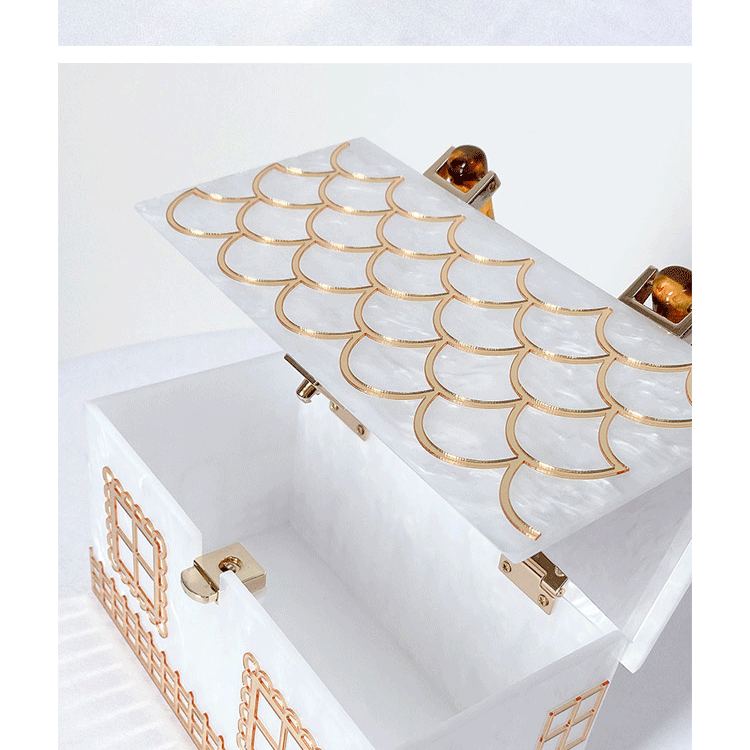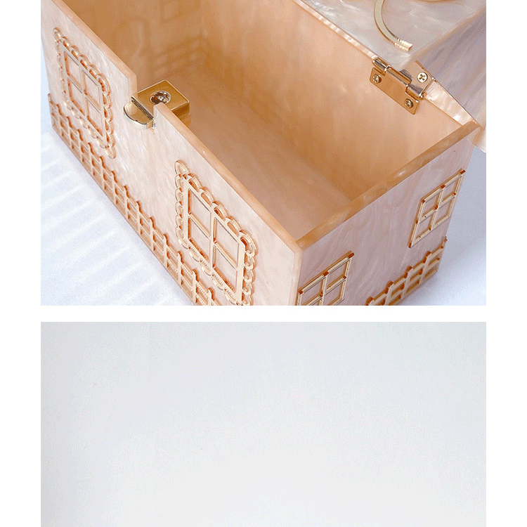 The Women's Luxury Alizekerr Acrylic Box Hand Bag is designed for everyday wear, combining style and practicality. Its durable acrylic handle and solid box structure ensure it holds up well to daily use while maintaining a fashionable look. Ideal for carrying your essentials comfortably, this house-shaped purse adds a unique and elegant statement to your regular wardrobe.