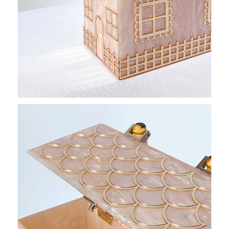 Experience exceptional quality with the Women's Luxury Alizekerr Acrylic Box Hand Bag. Crafted with a sturdy acrylic handle and a durable box structure, this handbag is built to last while maintaining its stylish appearance. Its unique house-shaped design combines both elegance and resilience, ensuring a premium accessory that supports your everyday needs with lasting beauty.