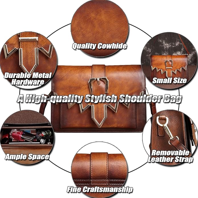 Genuine Leather: Made of genuine cowhide leather, this shoulder bag offers high strength and build quality, making it a great option for everyday use.