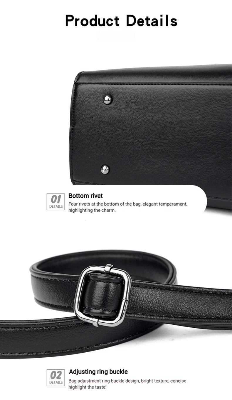 Designed for everyday use, this fashionable black handbag offers a large capacity to hold all your daily essentials comfortably. Its square box shape ensures easy organization, while the shoulder and crossbody straps provide versatile carrying options. Combining style and convenience, this bag supports your daily activities with ease and elegance.