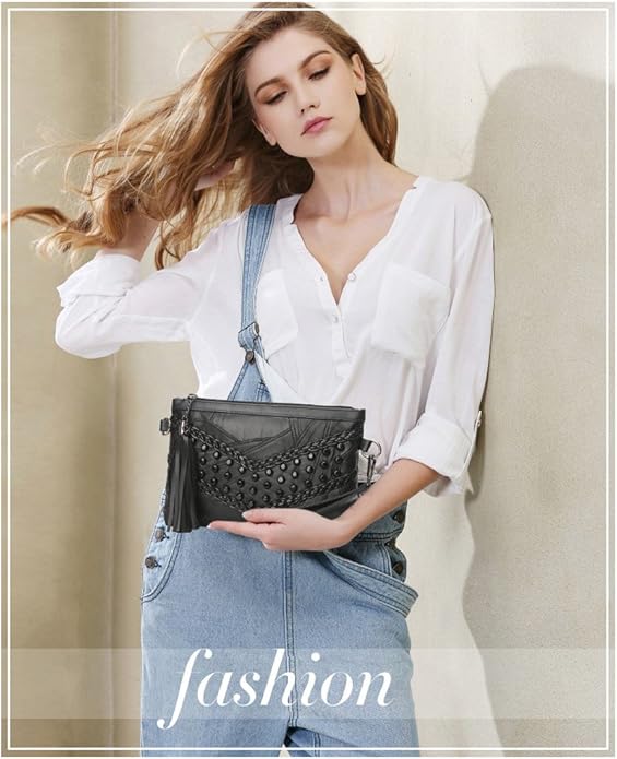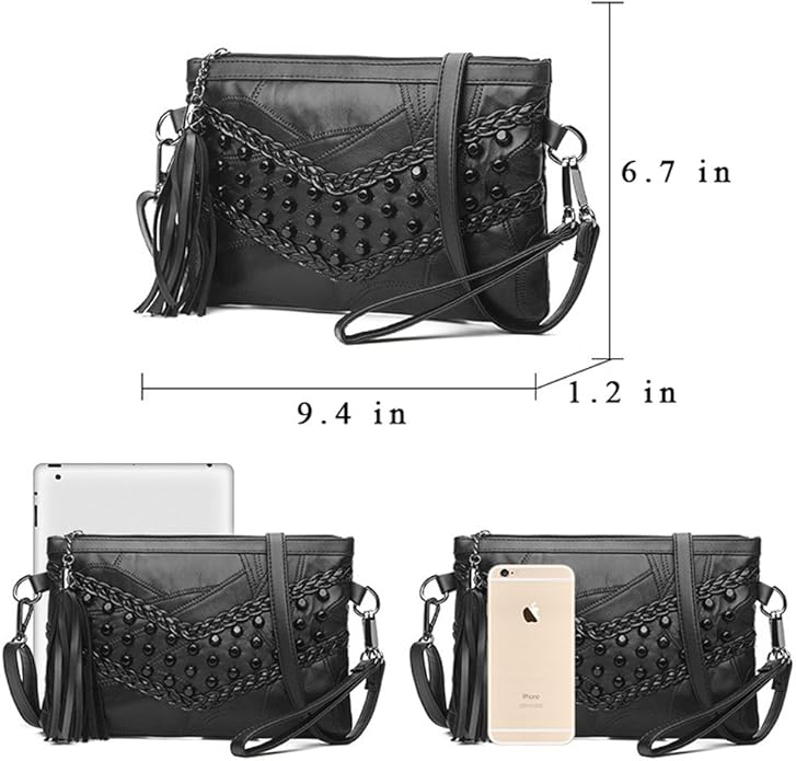Women's Sheepskin Mini Crossbody Bag Tassel Clutch Bag Large Capacity Shoulder Bag Women Slim Crossbody Bag