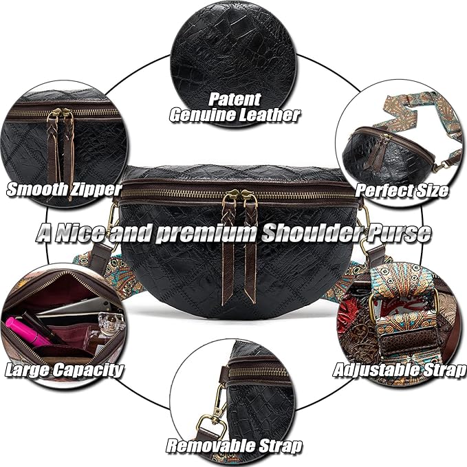 This women's crossbody bag combines practicality with style, offering a large capacity to carry all your essentials effortlessly. Made from original leather with detailed stitching and an embossed fashion design, it features a secure zipper pocket for organization and easy access. Its versatile crossbody and chest strap design provides comfortable wear, making it an ideal companion for daily use or travel. Durable and elegant, this bag supports your busy lifestyle while adding a fashionable touch to your outfit.
