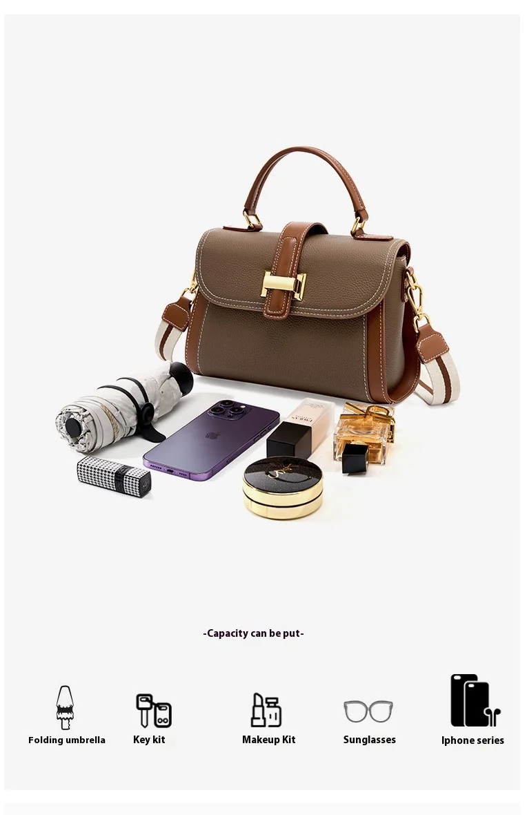 Women's Summer Fashion Portable Real Leather Messenger Bag Joker Contrast Color with Cover Closure Polyester Lining New Design2022 New Fashionable Single Shoulder Tote Bag Women's Small Square Handbag