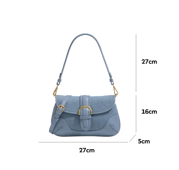 This women's denim shoulder bag offers a spacious, multi-pocket design perfect for keeping your belongings well-organized. Its retro blue finish adds a stylish touch while the comfortable underarm fit makes it easy to carry all day. Durable and practical, it’s an excellent choice for those seeking both fashion and functionality in one versatile accessory.