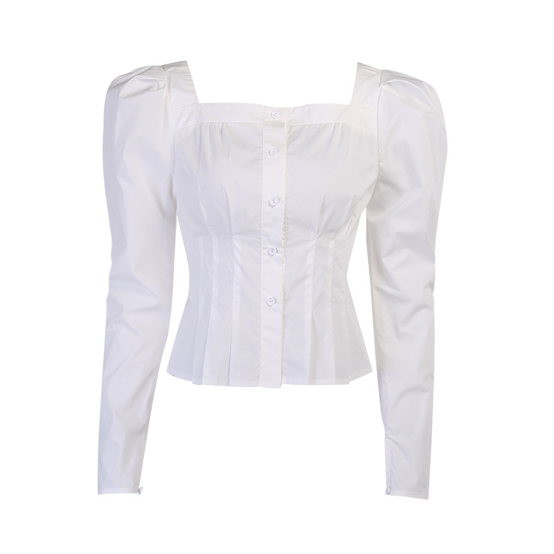 Damesoverhemd met pofmouw en één rij knopen