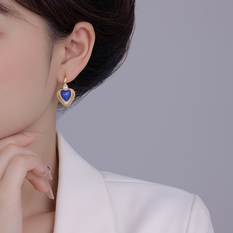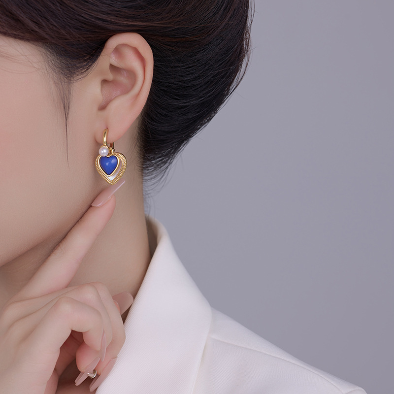 Natuurlijke schelp Klein Blue Loving Heart oorclip voor dames