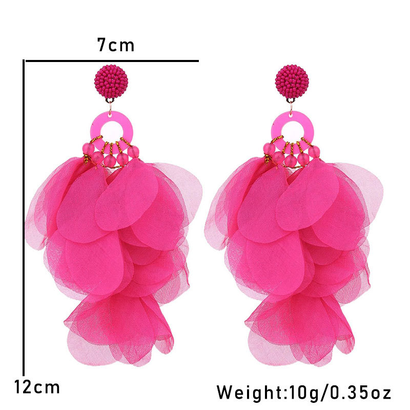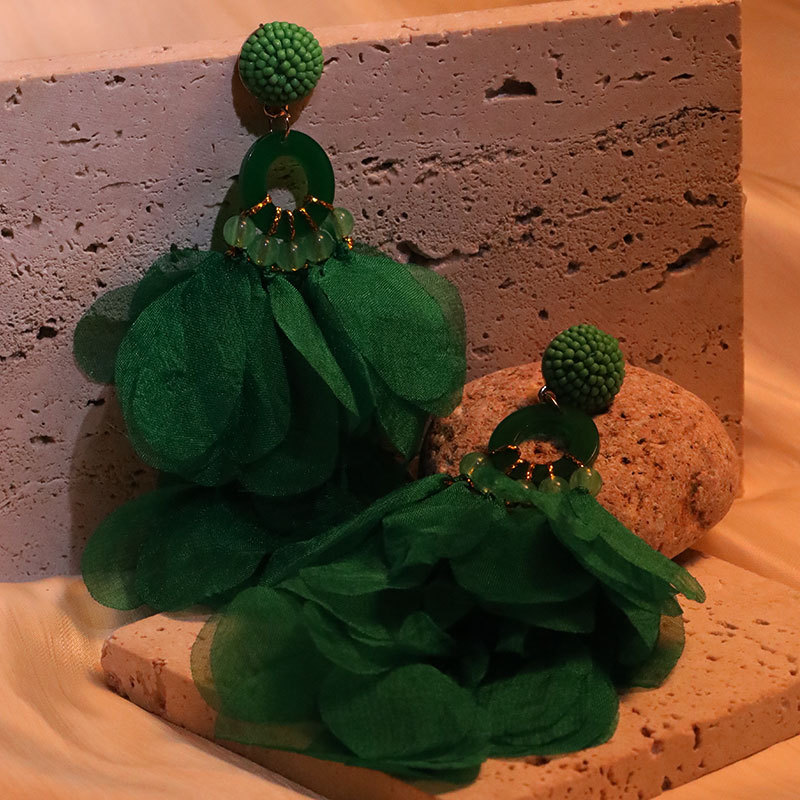Handmade fabric floral earrings women's fashion exaggerated long earrings