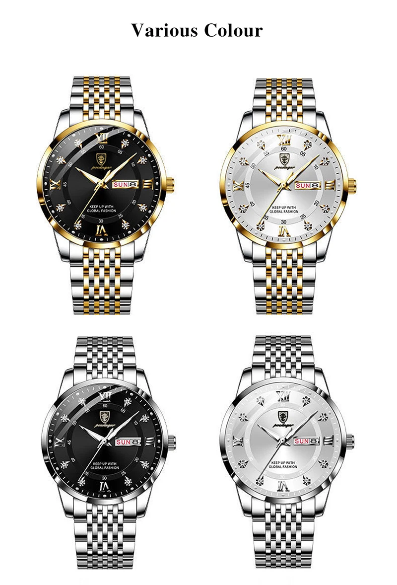The POEDAGAR Korean Style Luxury Men Quartz Watch is available in multiple color variants to suit your personal style. Choose from classic silver, sleek black, or elegant gold finishes, each crafted with durable stainless steel and designed to complement any wardrobe. These color options allow you to express your individuality while enjoying the watch’s waterproof and practical week and date features. Find the perfect shade that matches your look and enhances your everyday fashion.